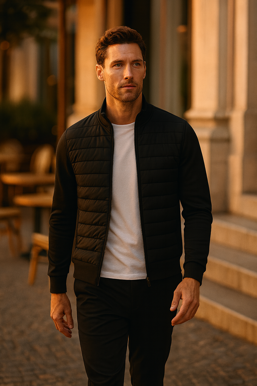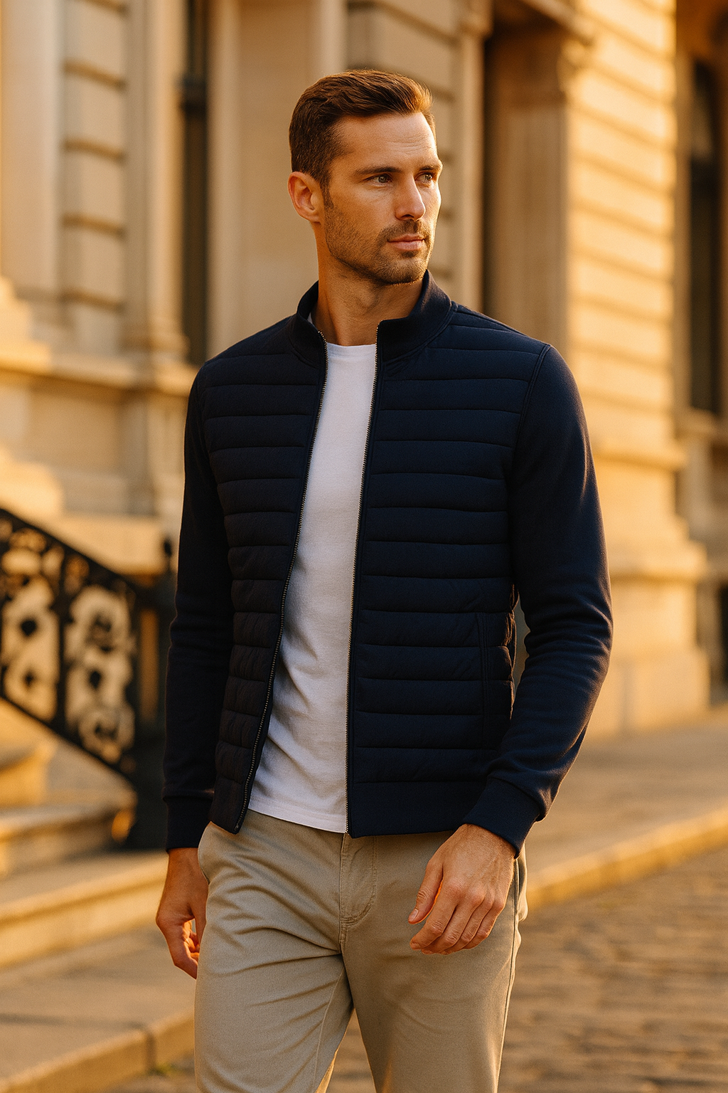 Dravenor™ combines a modern look with practical comfort. With its lightweight, breathable, and water-repellent construction, this jacket is perfect for everyday use. The subtle padding on the front adds structure, while the smooth sleeves provide an elegant finish – a companion that impresses in every situation.