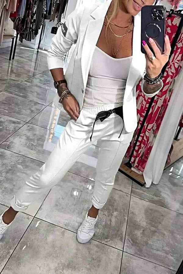 Feyvian™ combines a flowing blazer with comfortable joggers for a stylish ensemble that accompanies you all day. The set emphasizes the silhouette, offers freedom of movement, and adapts effortlessly to any occasion – from the office to vacation. An outfit that redefines elegance and relaxation.