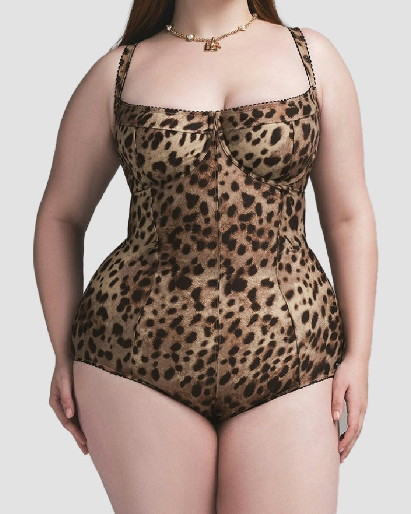 Victoria™ Sexy Leopard Picot Trim Bodysuit